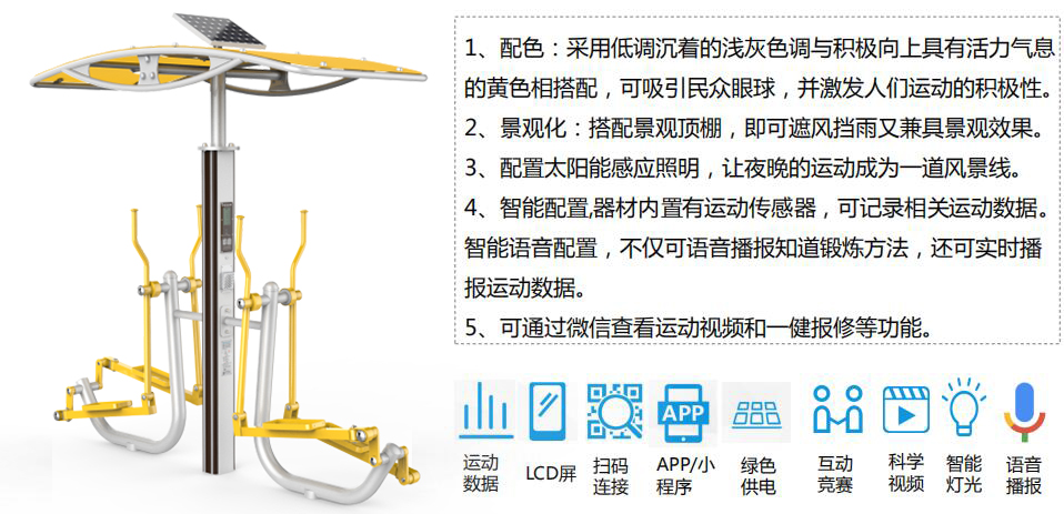 milantiyu全民健身产品涵盖健身路径、运动场馆、篮乒气羽排等产品,分为多个系列,先进的制造工艺、严苛的质量检测,确保产品性能优良、品质安全可靠,让运动简单科学。并将全民健身器材(户外路径器材、体育场馆等产品)进行智能化升级和互联,实现全人群覆盖、全场景智能,让运动赞美生活。