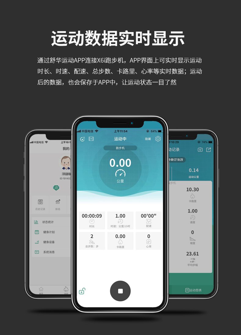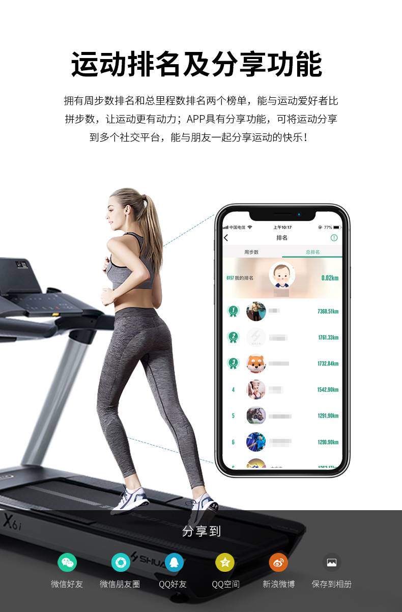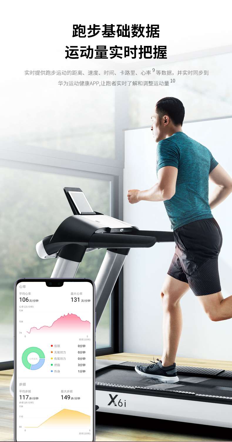 milantiyu跑步机-X6心率跑步机,可根据用户运动是实时心率,跑步机自动调节跑步速度、坡度等进行运动强度的调节,更科学;X6i华为版跑步机,可以通过连接华为运动健康APP,监测多种类型跑步数据。欢迎来电咨询~
