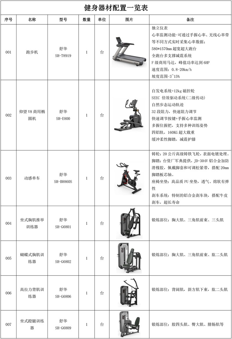 1.milantiyuV9智能跑步机SH-T8919*5台-独立仪表-简洁大气,全新外观设计,健康运动新选择;心率监测功能,可通过手握心率、无线心率带等不同方式实时采集心率数据;580*1570mm超宽超大跑台-跑感舒适,跑台整体安全稳定;全跑台多支撑减震平台,保证跑台超强支撑力,达到180kg支撑,满足专业健身房需求。F级商用马达-超强马达,AC 3.0HP 交流,峰值功率达到6HP,F级商用品质。速度范围达到0.8-20km/h;V9跑步机可实现跑台扬升功能,坡度范围-3~15%,满足客户不同的锻炼需求。