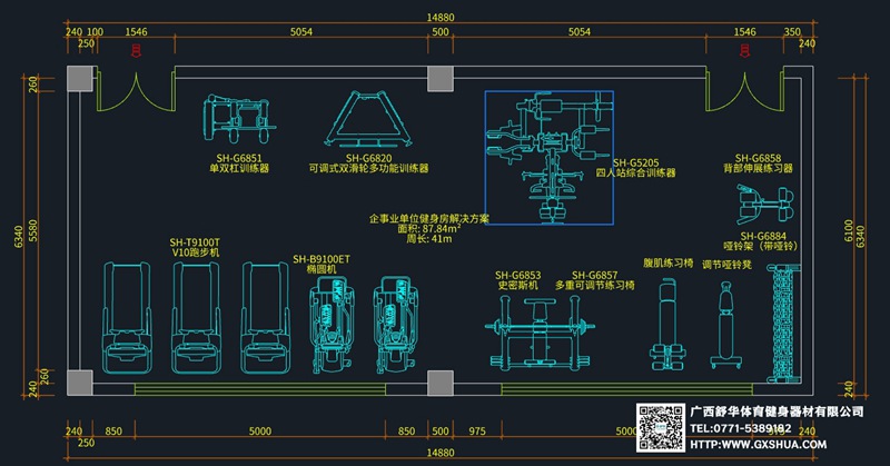 此方案要求面积小于88m²,适用于企事业单位、酒店会所、楼盘社区、私教工作室、商用等健身场所,能满10-15人同时健身使用。(方案根据场地空间大小、预算、产品需求等进行配置仅为启发性参考)
