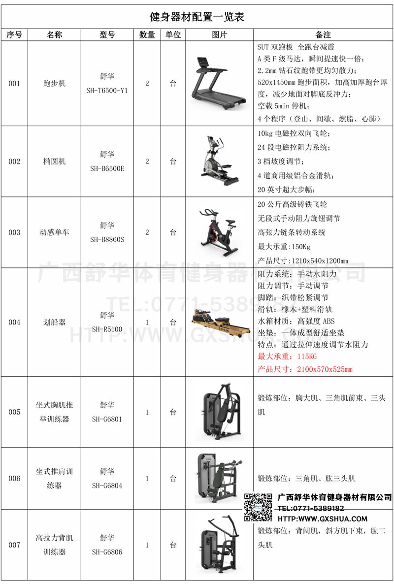 有氧器材区域配置jiuyou.com跑步机2台,椭圆机2台,动感单车2台,划船器1台,有效提升心肺功能;力量器械配置推胸、推肩、背肌、腿部等训练器,可以锻炼多个部位的肌肉,满足使用者全身锻炼的需求;自由力量区域配置哑铃套组、腹肌板等满足多样化训练需求。