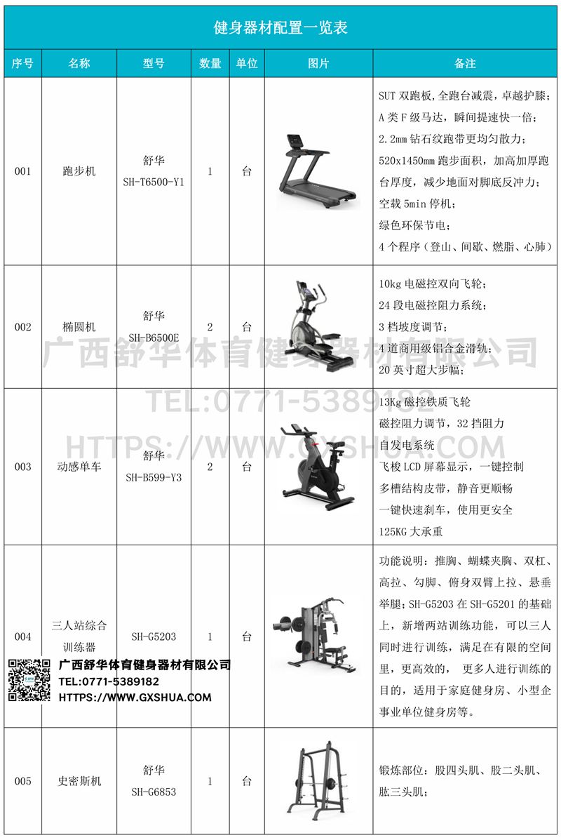 史密斯机(1台),多重可调节练习椅(1台),腹肌板(1台),6付哑铃套组(1套),哑铃凳*(1台),可以实现对不同肌肉群的针对性训练,满足肌肉训练需求,全方位激活身体机能。