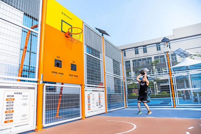 此次教育展上亮相的SH-P501趣味投篮训练器,兼备多程序智能设计,60/90s限时投篮、2人联机比拼、进阶式闯关投篮等游戏化趣味性运动挑战,搭配投篮器上智能数显,运动数据一目了然,多种玩法应用,激发学生的运动积极性。