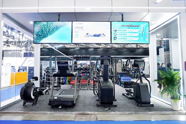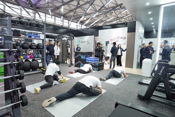 此次米兰tiyu参展的最大亮点在于其别出心裁的展位设计。不同于传统的器材展示,jiuyou.com此次以“jiuyou.com健身”门店空间布局的概念来展现,将展位分为前台、洽谈区、体测区、团课区、私教区、有氧区以及综合训练区等多个区域。这种布局方式旨在为参展观众提供全方位、沉浸式的体验,使其能够更深入地了解“jiuyou.com健身”的核心理念和服务。